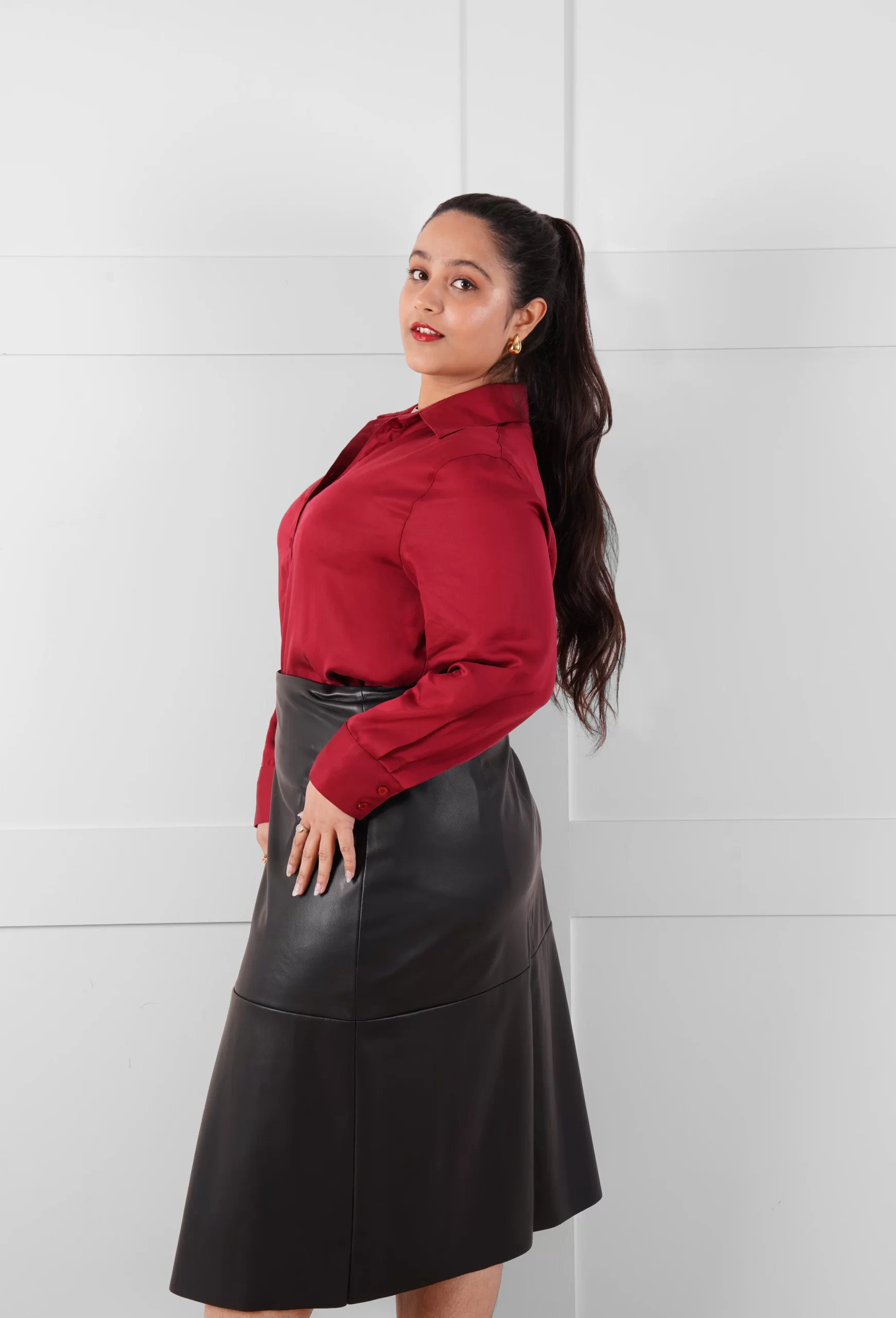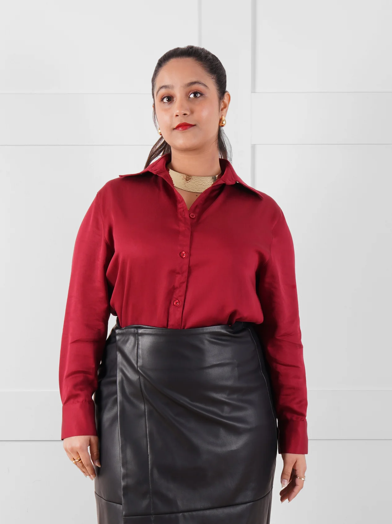 The Perfectly Petite Red Shirt is designed for petite women with curves who want statement style with an easy, flattering fit. Created by Petite & Curvy London, this deep red shirt balances boldness with comfort.